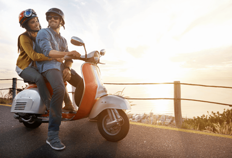 You may remember human-powered ride-on scooters from your childhood, but those aren’t the scooters we’re talking about. The scooters we’re discussing are a type of motorcycle. You might also hear these called mopeds, motor scooters or Vespas.