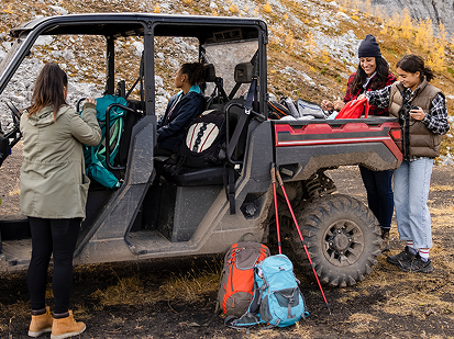 If you’ll be working in all kinds of weather, you might opt for a UTV with a full roof and windows to protect you from the elements. A large cargo tray is helpful for farm work or hunting, while three-row side-by-sides are the go-to for large families or people who enjoy riding with friends.